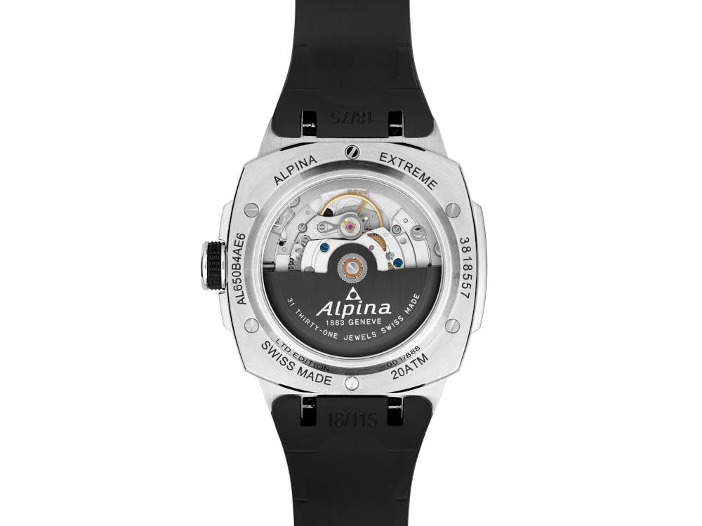 - This 2023 Alpina celebrates its 140th birthday and presents four new models for thrill-seekers in its Alpiner Extreme range, relaunched last year. On the one hand, there are two new versions, limited to 888 pieces each, of the atypical Regulator Automatic, a rare complication that Alpina, one of the last watchmakers to do so, is bringing back to life. And on the other hand, two new variants of the Automatic version, equipped with three central hands for a more traditional reading of the time. For the first time, three of these models have an integrated stainless-steel bracelet. Alpina has chosen cross-links, with a long, highly stretched central link, which ensures great flexibility and therefore comfort. In addition, the steel has a brushed finish. An unusual choice, but the only one capable of adapting to any scratches caused by extreme conditions.