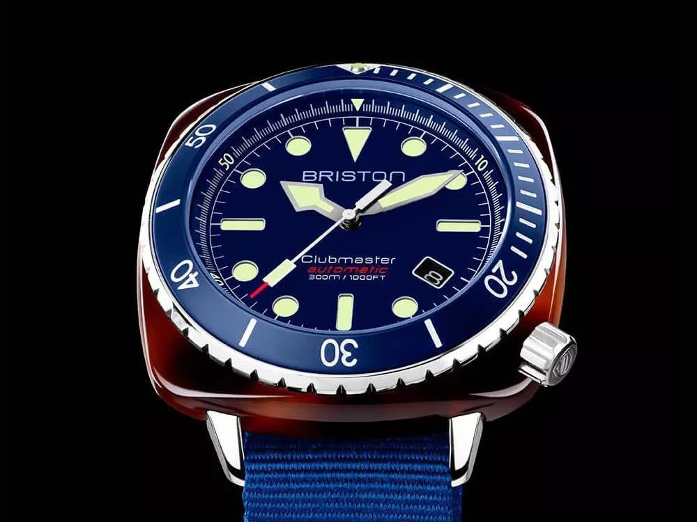 - For deep water diving, Briston offers this diver watch with a 44 x 44 mm case with tortoise shell acetate. Water-resistant to 300 meters, it is equipped with an automatic movement NH35A, a sapphire crystal and inserts in natural Superluminova Ā© for underwater time legibility. A Navy blue ceramic outer bezel allows you to calculate your dive times in complete safety. The Clubmaster Diver Pro is the ideal watch for all diving enthusiasts.