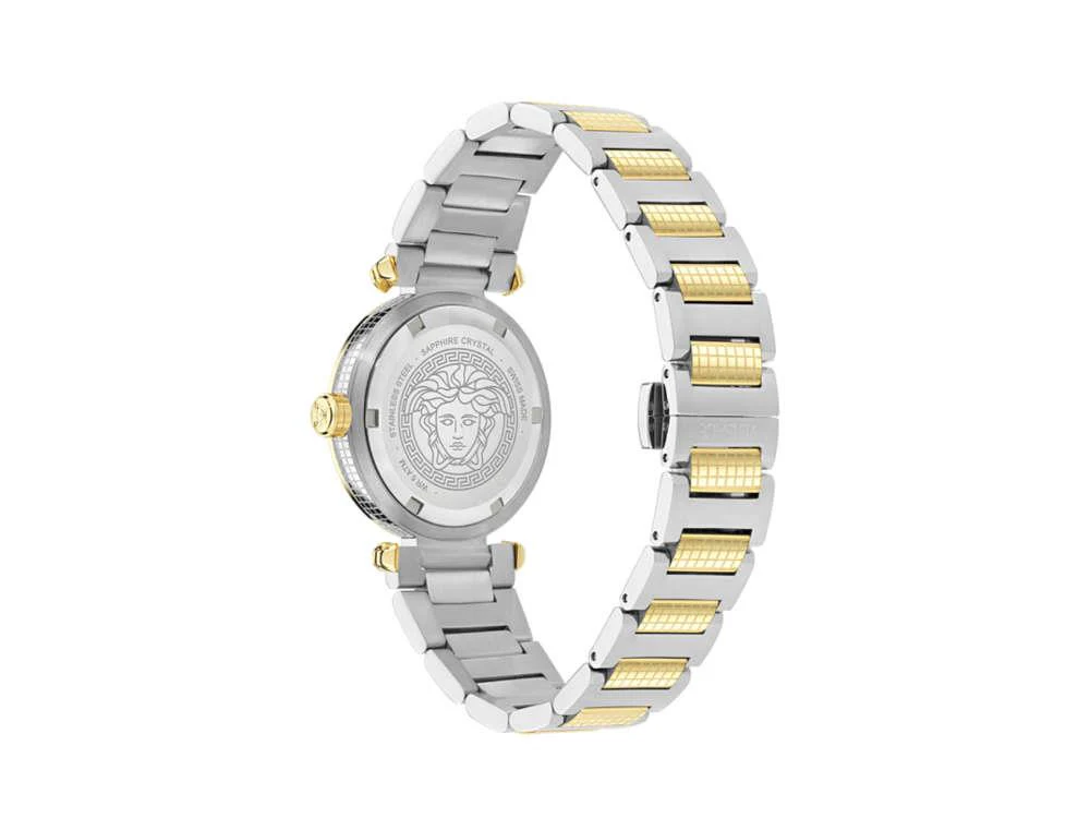 - The Versace Greek watch is inspired by the classic patterns of the brand, its dial with matelassé effect and enameled details in Greca make it a refined and timeless accessory.