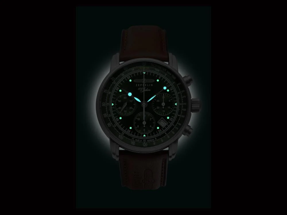 - The Zeppelin 8618-4 is an automatic watch from the 100 Jahre Zeppelin commemorative series, which combines classic design with German precision. It stands out for its green dial with chronograph functions, date and luminescent hands. It is ideal for those looking for an elegant watch with advanced functions and a timeless design.